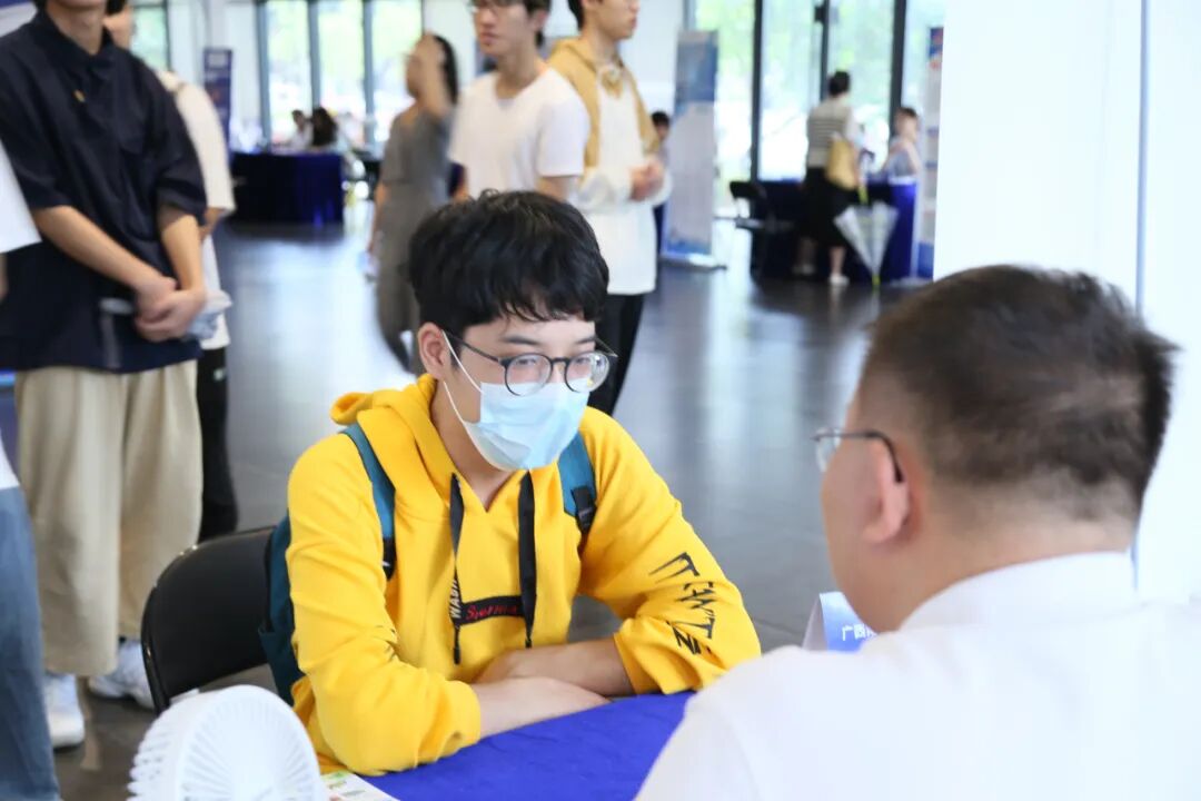 招聘会上,宁旭初与校友企业招聘工作人员和到场求职的毕业生进行了面对面交流,
