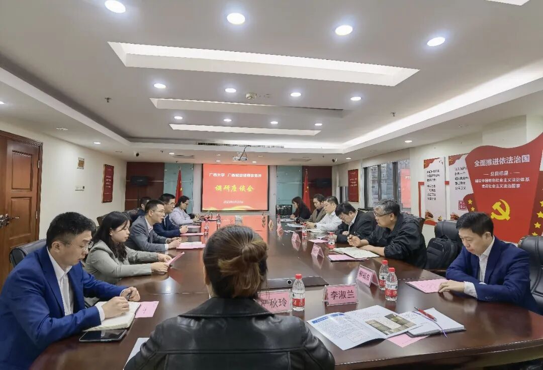 3月23日,校友总会秘书长、校教育发展基金会秘书长与法学院党委副书记、院长聂资鲁带队到广西冠益律师事务所签订捐赠协议并举行“涉东盟高端法律人才培养基地”挂牌仪式,与冠益所主任吕伟良校友、执行主任苏拥政校友等律所领导座谈交流。